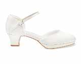Becca egy kézzel készült, törtfehér színű szatén menyasszonyi cipő, mely a klasszikus stílust képviseli. | Anyaga: törtfehér (ivory) szatén | Jelenleg raktáron: 36, 37, 38, 39, 40, 41, 42 méretek