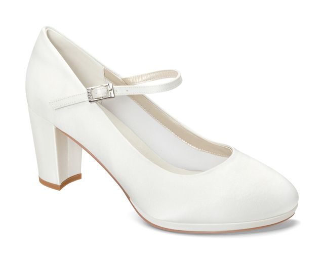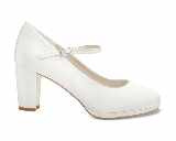 Brigitte egy klasszikus és elegáns, kézzel készített exkluzív menyasszonyi szaténcipő. | Anyaga: törtfehér (ivory) szatén | Jelenleg raktáron: 36, 37, 40, 41 méretek