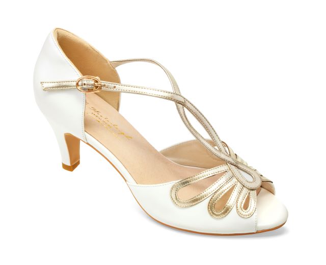 Anyaga: törtfehér (ivory) színű bőr | Sarokmagasság: 6,8 cm | Jelenleg raktáron: 36, 37, 38, 39, 40, 41 méretek